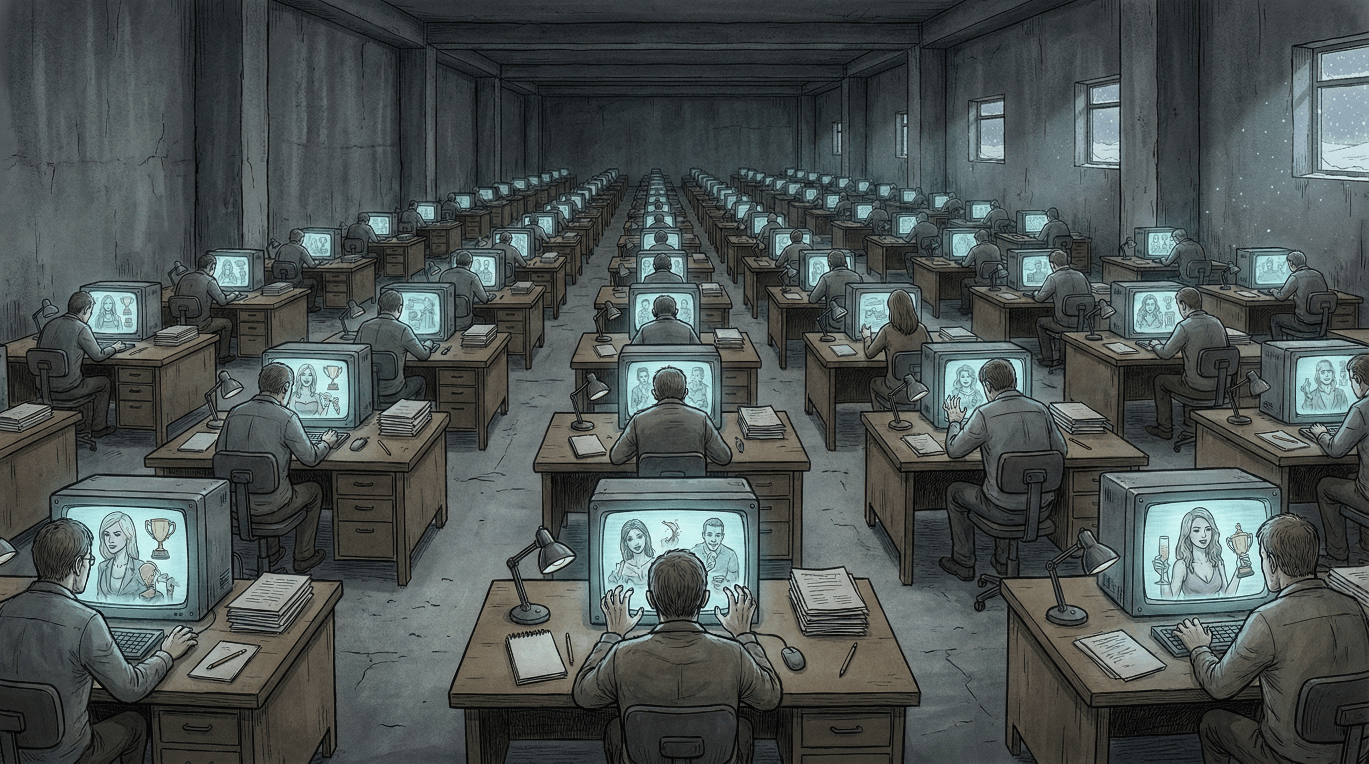 The elevator doors wheezed open and Drabelia was…perplexed. She saw an office space with desks, lamps, notepads, sharpened pencils and workers. But there was something else that was peculiar. She noticed little boxes that emitted bright, almost nauseating light and a droll hum. Images were dancing across the screen in a mesmerizing pattern but at the same time, she felt empty inside. The workers’ eyes were glued to these metal boxes and at times, they would jump up, desperately clawing at the screen. She noticed the nails of the closest worker and they were reduced to nubs, red and raw where a healthy nailbed should’ve been. Peering closer, she noticed the images in the boxes were of people. They were beautiful and healthy, grinning in tight clothes with their arms thrown around one another. Some people were holding up gold trophies or surrounded by luxurious gems.