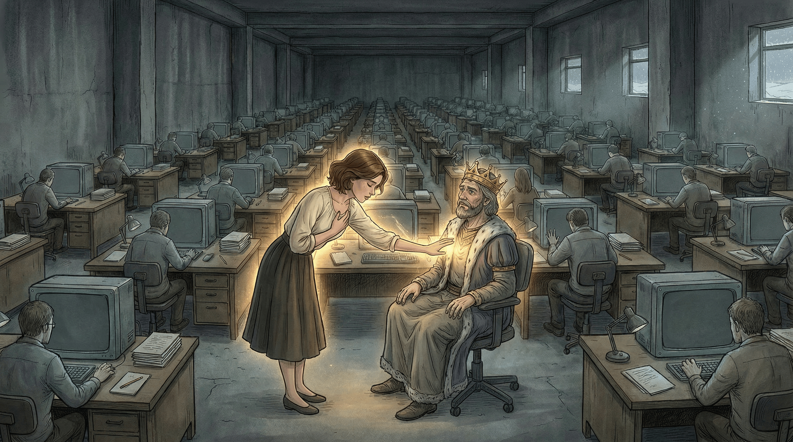 Pained beyond words but bound to her sacred Bookbender oath, Drabelia tore her eyes from the sad visage of the King and walked towards the desk, her back hunched. Bookbending was an ancient, revered art, meant for sustainable and positive businesses, not companies with far-away investors that suck the life out of their patrons. But still - Drabelia couldn’t say no to a bookbending job since it was her life’s purpose and mission. She sadly placed her quill and ink well on the desk and clutched her kerchief for moral support.