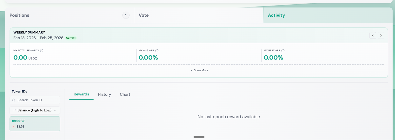 Note, I’m simplifying this entry since rewards earned from your veNFT are technically swapped into USDC by 40 Acres. In our view, it’s impractical for the end user to track these detailed swaps and only the resulting stablecoin rewards should be tracked.
